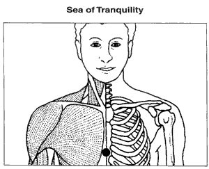 Primero vas a presionar suavemente el punto que en acupuntura se le llama Mar de la tranquilidad o CV-7. Este está localizado justo debajo del esternón y es muy útil en momentos cuando sientas frustración, tensión y necesites una sensación de apertura y paz interior. Simplemente presiona gentilmente al menos un minuto. Si es posible cierra los ojos y déjate llevar por la sensación de apertura y paz interior recordando respirar suave y profundamente. Puedes repetir en tu mente alguna de las afirmaciones que te mostré en el artículo “Técnica de relajación # 5: Como programar tu mente para que el estrés no te robe tus energías ni tus sueños a través de afirmaciones.”